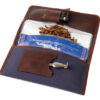 Cette blague en cuir pleine fleur et toile épaisse bleue, dispose d’une grande poche principale pour y glisser votre paquet de tabac à pipe (ou à rouler).