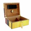 Pouvant contenir jusqu’à 80 cigares, cette cave à cigares aux décors et couleurs cubains est également accompagnée d’accessoires tels que l’hygromètre et l’humidificateur, indispensables à la bonne conservation de vos modules.